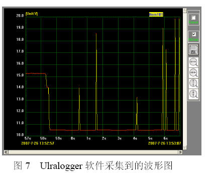 如果我們想看數(shù)據(jù)在巡檢時(shí)候的波形,也可以打開(kāi)波形顯示,觀察數(shù)據(jù)巡檢時(shí)候的數(shù)據(jù)變化曲線。在波形圖中,我們可以通過(guò)Ultralogger軟件在PC上很直觀地看到電壓電流變化曲線。