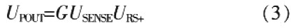 MAX42ll A/B/C的簡化電路如圖5所示,主要包括精密電流檢測放大器,25:1的電阻分壓器,模擬乘法器。外圍電路包括被測的4~28V源電壓,2.7~5.5V的芯片工作電壓,電流檢測電阻RSENSE和負(fù)載。其測量原理是利用精密電流檢測放大器來檢測負(fù)載電流,獲得與該電流成正比的模擬電壓,再將該電壓加至模擬乘法器,將負(fù)載電流與源電壓相乘后,從POUT端輸出與負(fù)載功率成正比的電壓。令功率檢測放大器的增益為G,RSENSE上的電壓為USENSE,RS+引腳的源電壓為URS+,則有