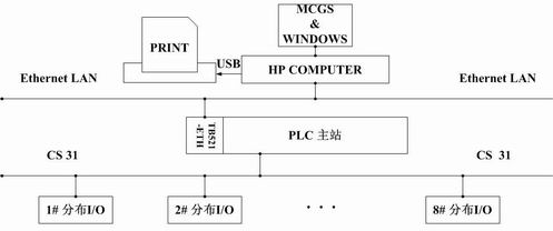 PLC主站通過(guò)CPU(PM581)上保留的CS31通訊接口、CS31通訊總線與分布I/O(AC31遠(yuǎn)程擴(kuò)展模塊)構(gòu)成高速通訊網(wǎng)絡(luò),隨時(shí)采集現(xiàn)場(chǎng)設(shè)備的運(yùn)行狀況和故障信息,并上傳工控計(jì)算機(jī),形成分布控制。