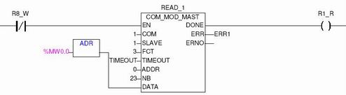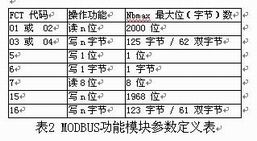 只需設(shè)定好MODBUS功能塊的(COM,SLAVE,FCT,ADDR,NB等)參數(shù),PLC主站就可以順利的從1#I/O子站讀取數(shù)據(jù)。其中FCT,NB的參數(shù)可根據(jù)實(shí)際情況依照表2確定 。