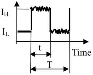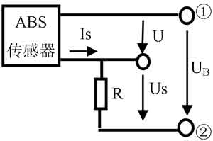 如圖1所示,測(cè)試時(shí),ABS的旋轉(zhuǎn)系統(tǒng)被驅(qū)動(dòng)系統(tǒng)帶動(dòng)以任意方向恒定的速度旋轉(zhuǎn)。對(duì)于MK60型ABS傳感器,就是指在沒有制動(dòng)力的情況下,以恒速139.5r/m旋轉(zhuǎn)。如圖2所示,分別在接點(diǎn)①和②間(UB)給傳感器施加12Vdc和3.3Vdc電壓,在旋轉(zhuǎn)中連續(xù)進(jìn)行兩次測(cè)試,每次測(cè)試都要保證測(cè)試完整的一周。當(dāng)ABS傳感器感應(yīng)到發(fā)號(hào)片,就產(chǎn)生方波的波峰,否則產(chǎn)生波谷,使用115Ω的高精度電阻R取得電壓US。當(dāng)UB為12V時(shí),根據(jù)所測(cè)得的電壓值計(jì)算出方波的頻率、電流峰值IH的最大值和最小值、電流谷值IL的最大值和最小值以及信號(hào)的占空比。如圖3所示,當(dāng)UB為3.3V時(shí),根據(jù)所測(cè)得的電壓值計(jì)算出極對(duì)數(shù)和極距間隙。如果這些值在許可的范圍內(nèi),就可以判定ABS傳感器是合格的。