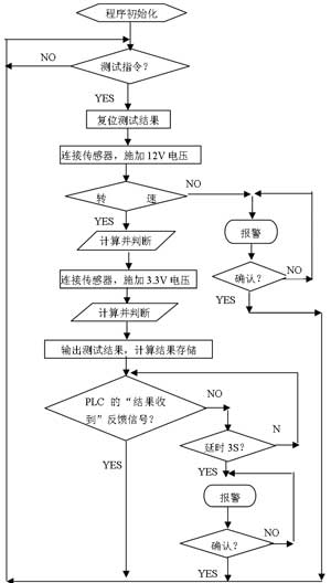 8 等待PLC的反饋信號(hào),在3s之內(nèi),收到PLC發(fā)回的“結(jié)果收到”信號(hào),則返回步驟2,處于等待“測(cè)試指令”脈沖信號(hào),準(zhǔn)備下次測(cè)試;否則進(jìn)行報(bào)警提示。