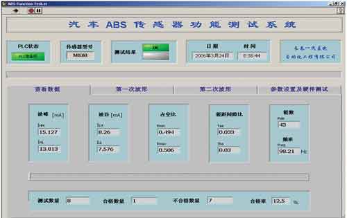 本設(shè)計(jì)使用NI PCI-6220多功能數(shù)據(jù)采集卡和LabVIEW 7.1開發(fā)軟件,根據(jù)德國大眾的ABS傳感器功能測(cè)試標(biāo)準(zhǔn),開發(fā)出了滿足要求的測(cè)試系統(tǒng)。該系統(tǒng)速度快、運(yùn)行可靠,能實(shí)現(xiàn)數(shù)據(jù)采集、分析及存儲(chǔ),并已經(jīng)在生產(chǎn)線上投入使用。