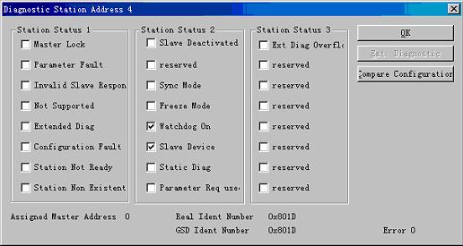 選擇Online菜單的StartDebugMode,然后選擇IM153-1從站,鼠標(biāo)右鍵選擇DeviceDiagnostic進行從站診斷,下圖為IM153-1正常工作時的診斷畫面: