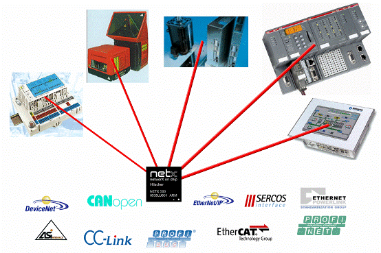 新一代工業(yè)網(wǎng)絡(luò)控制芯片netX支持幾乎所有的主流工業(yè)網(wǎng)絡(luò)通訊技術(shù),從現(xiàn)場(chǎng)總線到實(shí)時(shí)工業(yè)以太網(wǎng):Profibus、CANopen、DeviceNet、InterBus、AS-Interface、PROFINET、EtherCAT、EtherNet/IP、SERCOS III、Powerlink等。netX既可以作為通訊接口,又可以作為一個(gè)單片系統(tǒng),為集成各種各樣的現(xiàn)場(chǎng)總線和實(shí)時(shí)工業(yè)以太網(wǎng)通訊提供了無可比擬的靈活性。netX其最優(yōu)的硬件設(shè)計(jì),不僅是條形碼、識(shí)別系統(tǒng)、智能I/O、低成本驅(qū)動(dòng)器、可編程邏輯控制器和終端設(shè)備的統(tǒng)一平臺(tái),而且為用戶開發(fā)自己的通訊協(xié)議及應(yīng)用提供了統(tǒng)一平臺(tái)。