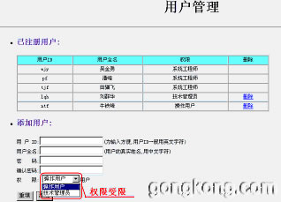 用戶管理。系統(tǒng)維護(hù)工程師可以在登錄后,增刪操作員用戶,同樣,系統(tǒng)管理員可對(duì)系統(tǒng)維護(hù)工程師進(jìn)行管理。