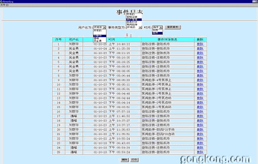 數(shù)據(jù)保存及自動(dòng)打印。數(shù)據(jù)可自動(dòng)保存在SQL數(shù)據(jù)庫(kù)中,打印可按用戶設(shè)定的時(shí)間自動(dòng)打印或人工打印,打印時(shí)可選擇預(yù)覽功能。事件管理功能。用戶可查看不同時(shí)期的報(bào)警記錄,操作員對(duì)泵/閥的操作記錄,各種登錄記錄等。