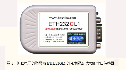 第三代以太網(wǎng)工業(yè)通信產(chǎn)品不僅可以從以太網(wǎng)口直接擴(kuò)展出RS-232、RS-485、RS-422口,而且實(shí)現(xiàn)了光電隔離。波仕ETH232GL1光電隔離微型以太網(wǎng)/串口轉(zhuǎn)換器(如圖3)秉承波仕轉(zhuǎn)換器的一貫特色,具有超小型的外形(80*23*47mm)、RS-232、RS-485、RS-422通用,可以虛擬成為本地COM串口(COM1-COM256)、無(wú)須修改已有的串口通信軟件。