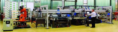 所以?xún)H一個(gè)切割工位的運(yùn)動(dòng)控制就包括了CNC數(shù)控、電子齒輪控制、特殊的運(yùn)動(dòng)控制算法等。就整線來(lái)說(shuō),該生產(chǎn)線包括3個(gè)CNC數(shù)控通道,一個(gè)多關(guān)節(jié)機(jī)器人控制,同時(shí)又有多個(gè)與CNC數(shù)控通道相互綁定的電子齒輪/電子凸輪控制,以及特殊的運(yùn)動(dòng)控制算法等。系統(tǒng)還包括PLC控制,分布式I/O控制,人機(jī)界面,各系統(tǒng)單元的總線通信,所有這些功能均可以在一個(gè)系統(tǒng)平臺(tái)上運(yùn)行,即高性能的Automation PC 620,采用一個(gè)編程工具,即Automation Studio,這就是Generic Motion Control所倡導(dǎo)的控制理念。