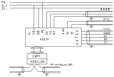 6SE系列變頻器/逆變器在CUVC主板上通過ADB板上插入CBP2總線適配器連接到Profibus總線上,CBP2具有電隔離的RS485口,變頻器通過CBP2的九針SUB-D的插接器連到Profibus總線上。主站能通過它對(duì)變頻器進(jìn)行運(yùn)行控制操作、調(diào)節(jié)運(yùn)行頻率、更改變頻器的功能碼、讀取變頻器的運(yùn)行狀態(tài)。變頻器也通過CBP2反饋對(duì)主站控制信號(hào)的應(yīng)答信號(hào),主站可以根據(jù)變頻器的應(yīng)答信號(hào)判斷控制信號(hào)執(zhí)行情況。