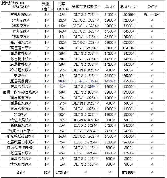 為配合福建港興集團(tuán)紙業(yè)有限公司的節(jié)能降耗工作,對(duì)以下設(shè)備作了技術(shù)分析,預(yù)計(jì)綜合節(jié)能效果達(dá)30%以上。(投資回收按25%計(jì)算)