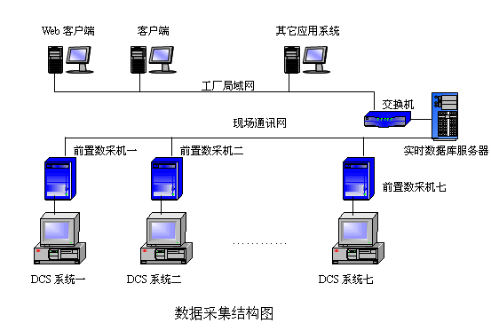 實(shí)時(shí)數(shù)據(jù)采集部分就是把工廠的各個(gè)部分的計(jì)算機(jī)監(jiān)控系統(tǒng)中的實(shí)時(shí)生產(chǎn)數(shù)據(jù)采集出來(lái),為整個(gè)系統(tǒng)提供生產(chǎn)數(shù)據(jù)來(lái)源,這是整個(gè)項(xiàng)目的基礎(chǔ);實(shí)時(shí)/歷史數(shù)據(jù)庫(kù)是整個(gè)項(xiàng)目的核心和技術(shù)關(guān)鍵,起到承上啟下的作用,為上層管理軟件提供實(shí)時(shí)、歷史數(shù)據(jù),完成工藝流程圖和生產(chǎn)數(shù)據(jù)的WEB發(fā)布等功能;高級(jí)應(yīng)用就是在實(shí)時(shí)數(shù)據(jù)庫(kù)的基礎(chǔ)上完成工廠的生產(chǎn)管理、計(jì)算功能,這其中包括班組成本核算,能耗、物耗計(jì)算,機(jī)組性能計(jì)算和經(jīng)濟(jì)運(yùn)行分析等。下面分別進(jìn)行詳細(xì)介紹。