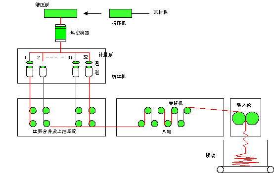 前紡部分主要是由擠壓、溶體輸送、紡絲、卷繞等部分組成。