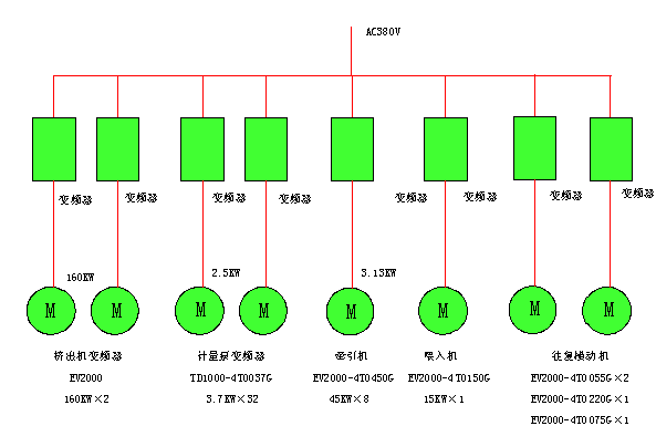 2、前紡紡絲部分的變頻器調(diào)速系統(tǒng)