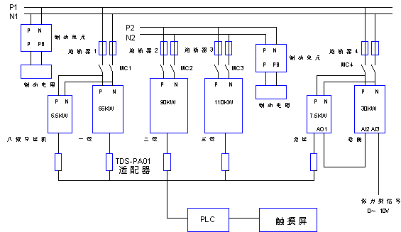 這樣,從工藝上考慮,55KW發(fā)出電可以供應(yīng)30KW/5.5KW/7.5KW使用,而90KW發(fā)出的電可以供應(yīng)110KW使用,節(jié)約了大量的能量。