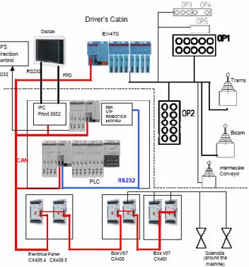 基于CAN總線(xiàn)的掘進(jìn)機(jī)懸臂控制系統(tǒng)就是各個(gè)控制單元和傳感器將控制和檢測(cè)信號(hào)數(shù)字化編碼,以一定的頻率不斷地發(fā)送到CAN總線(xiàn)上,而執(zhí)行元件則從CAN總線(xiàn)上各取所需,并把執(zhí)行情況反饋到CAN總線(xiàn)上。數(shù)字化的編碼使所有信號(hào)互不干涉。