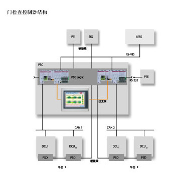 除了經(jīng)CAN總線的DCU連接外,PSC通過RS485與LESS(本地環(huán)境監(jiān)視系統(tǒng))。通過RS232與PTE通信,通過以太網(wǎng)與顯示器通信。通過開關(guān)量信號與PTI通信。由貝加萊2003提供的通信靈活性毫無疑問的滿足了這些網(wǎng)絡(luò)要求。CP476 CPU處理所有門控制器,開關(guān)量I/O和網(wǎng)絡(luò)連接。此外貝加萊的AUTOMATION STUDIO還提供了最佳的編程環(huán)境。