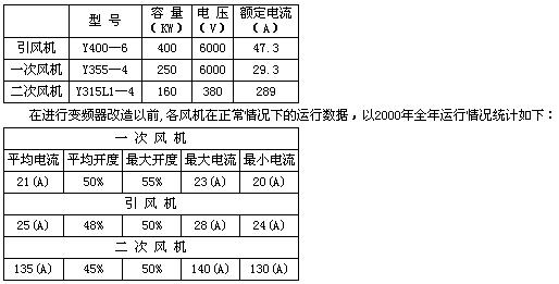 由于鍋爐在正常運(yùn)行中的燃料構(gòu)成、熱負(fù)荷、電負(fù)荷以及季節(jié)等變化因數(shù)較大,因此,鍋爐燃燒所需要的空氣量在各個(gè)不同的情況下,也相應(yīng)有較大的變化,然而,鍋爐配置的風(fēng)機(jī)是按鍋爐最大出力情況下的所需最大風(fēng)量來設(shè)計(jì),并必須考慮鍋爐在事故情況下一定的風(fēng)量裕度,所以,風(fēng)機(jī)電機(jī)功率的配置一般都較大,從表中的統(tǒng)計(jì)數(shù)據(jù)可看出,鍋爐風(fēng)機(jī)檔板的平均開度,在正常情況下引風(fēng)機(jī)為48%左右,二次風(fēng)機(jī)僅為45%左右。用檔板調(diào)節(jié)控制,大量電能浪費(fèi)克服擋板的阻力上,造成廠用電率高,影響機(jī)組的經(jīng)濟(jì)運(yùn)行。