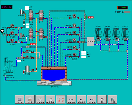 根據(jù)設(shè)備安裝位置及工藝流程的要求,電氣系統(tǒng)分上位機和下位機兩大部分,上位機采用研華的工控機,下位機系統(tǒng)分為主控制柜和控制線路柜以及電力負荷開關(guān)柜??刂凭€路柜裝有一臺可編程序控制器用于監(jiān)控各工藝流程、設(shè)備的實時運行情況及狀態(tài),對液位、壓力、流量、水質(zhì)等工藝參數(shù)的采集和顯示以及控制參數(shù)的設(shè)定??刂凭€路柜裝有可編程序控制器,用來作為對各點數(shù)據(jù)的采集并通過Modbus通訊協(xié)議與主控室的上位機和可編程控制器通訊,在主控室的上位機PC機通過組態(tài)軟件(MCGS)對設(shè)備的現(xiàn)場狀況進行顯示,以達到異地控制模式人機互動的效果。
