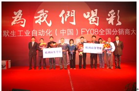 經(jīng)過艾默生公司市場(chǎng)人員和全國(guó)各工控產(chǎn)品分銷商的不懈努力和積極開拓,艾默生工控產(chǎn)品的銷售在FY07取得了驕人的業(yè)績(jī),并在一些新的重點(diǎn)行業(yè)和新客戶處取得突破,客戶的認(rèn)知和認(rèn)可度得到進(jìn)一步提升,新產(chǎn)品推廣會(huì),行業(yè)展示會(huì),技術(shù)交流會(huì)蓬勃展開,建立起了一定的品牌地位。在激烈的市場(chǎng)競(jìng)爭(zhēng)中,涌現(xiàn)出了一批批優(yōu)秀的分銷商和個(gè)人,在答謝晚宴上,艾默生對(duì)這些人員進(jìn)行了表彰和嘉獎(jiǎng),評(píng)選出年度優(yōu)秀分銷商,頒發(fā)了市場(chǎng)拓展獎(jiǎng)以及維護(hù)獎(jiǎng),起到了良好的激勵(lì)作用。