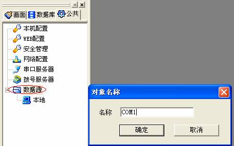 進(jìn)入開(kāi)發(fā)環(huán)境,在導(dǎo)航樹(shù)中選擇“公共/數(shù)據(jù)源”并雙擊,出現(xiàn)數(shù)據(jù)源名稱輸入框: