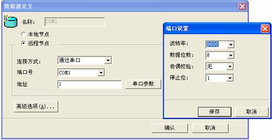 在對(duì)話框中輸入串口數(shù)據(jù)源名稱并確認(rèn),將出現(xiàn)數(shù)據(jù)源配置框。如下所示: