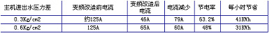 中山中銀大廈中央空調(diào)現(xiàn)場共有4臺(tái)冷卻泵,電機(jī)均為75KW,正常情況下開1~2臺(tái)泵,3號(hào)、4號(hào)冷卻泵使用易驅(qū)ED2003-4T0750FP型變頻器,1號(hào)、2號(hào)泵為工頻備用,當(dāng)變頻器需檢修時(shí)1、2號(hào)泵運(yùn)行,從而保證系統(tǒng)運(yùn)行可靠性。 變頻器由上位計(jì)算機(jī)監(jiān)控其運(yùn)行狀態(tài)。下表為變頻改造前后一臺(tái)冷卻泵數(shù)據(jù)對(duì)照表: