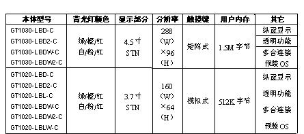 GT10系列HMI分為GT1020(3.7寸)和GT1030(4.5寸)兩種機(jī)型。采用高亮度STN液晶,突破性提供3種顏色背光燈(綠/橙/紅 或 白/粉/紅),可以根據(jù)設(shè)備運(yùn)行狀況,選擇不同畫面顏色,使您即使不在設(shè)備附近也能清晰分辨報警信息等異常狀況。