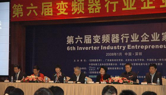 2008,一個令國人振奮的年度,一個新的起點,風(fēng)雨的歷練換來的是茁壯的成長,時光的洗禮贏得的是機遇和尊重,在萬眾期待的目光中,由《變頻器世界》、廣東省自動化學(xué)會、北京電力電子學(xué)會、中國機電一體化協(xié)會、中國電器工業(yè)協(xié)會變頻器分會、中國電源學(xué)會變頻電源與電力傳動專委會主辦、北京合康億盛科技有限公司聯(lián)合主辦的第六屆變頻器行業(yè)企業(yè)家論壇于2008年1月12日~13日在深圳海景酒店海量堂隆重召開。