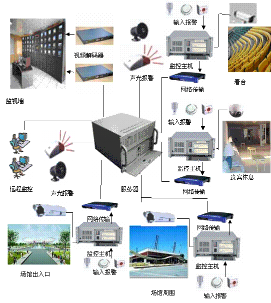 運動場館一般是一個由主體育場、訓練場、體育館、游泳館、商業(yè)區(qū)等組合而成的一個建筑群,在我們設計安全防范系統(tǒng)的整體方案時,不僅要考慮主體育場本身的安全防護需要,還要從體育中心這一建筑群的整體出發(fā),為其設計安全有效的技術防范體系。