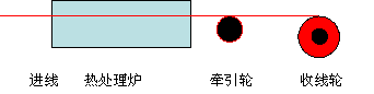 中絲熱處理是對半成品鋼絲通過熱處理正火,消除鋼絲在拉拔過程中產(chǎn)生的加工硬化,它是一種連續(xù)加工工藝,示意圖如下: