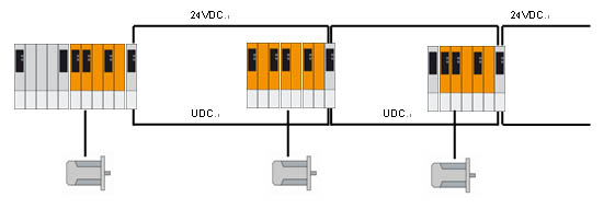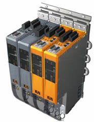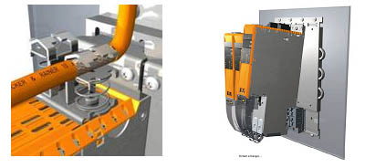 簡(jiǎn)單的系在安裝板上,并用兩個(gè)螺絲釘固定,這樣就可建立兩個(gè)供電模塊之間的連接。除了DC總線和24V的連接外,通過(guò)軌道系統(tǒng)完成保護(hù)線連接,模塊間再無(wú)需其它的接地措施。