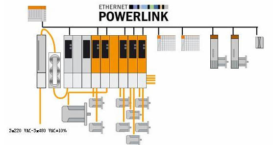 通過(guò)B&R POWERLINK高速實(shí)時(shí)以太網(wǎng)技術(shù)連接各伺服站,最大站間距離100米,構(gòu)成分布式的伺服驅(qū)動(dòng)系統(tǒng)。對(duì)于大型長(zhǎng)線機(jī)器而言, ACOPOSmulti使得系統(tǒng)的結(jié)構(gòu)變得更加緊湊,接線時(shí)間及電纜的消耗都比較少。