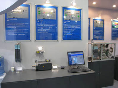 "放飛夢(mèng)想,卷繞未來"作為此次西門子Converting行業(yè)的座右銘,在40平米西門子展臺(tái)上,我們展示了西門子在Converting行業(yè)的連續(xù)物料加工解決方案涵蓋了:"標(biāo)準(zhǔn)應(yīng)用軟件包,卷繞,結(jié)合控制,輪切,飛鋸和排線"等等。選用我們的產(chǎn)品,系統(tǒng)和服務(wù)為您實(shí)現(xiàn)最新的工藝和量體裁衣的功能和卓越的性能要求。