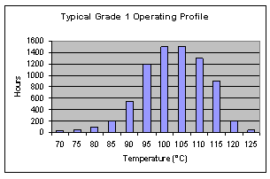 汽車生命周期的第二部分是非行駛時(shí)間。假定大約為14年或125,000個(gè)小時(shí)。汽車在非行駛時(shí)處于低很多的溫度。下面是一個(gè)平均溫度為38℃的典型溫度壽命圖。