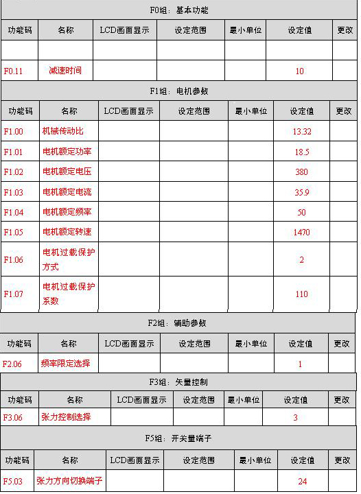 ?。?)通過前面分析的整個(gè)收卷的動(dòng)態(tài)過程,在不同卷徑和不同運(yùn)行速度的各個(gè)階段,進(jìn)行一定的轉(zhuǎn)矩補(bǔ)償。補(bǔ)償?shù)拇笮?,以電機(jī)額定轉(zhuǎn)距的百分比來設(shè)定。
