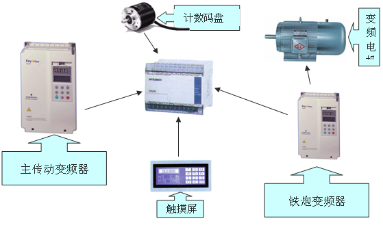 采用變頻器進(jìn)行恒張力控制的方法,對(duì)粗紗機(jī)的鐵炮進(jìn)行改造,就可以真正實(shí)現(xiàn)無鐵炮運(yùn)行。
