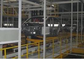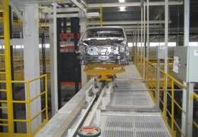 主焊線到調(diào)整線的空中地面摩擦線輸送系統(tǒng),調(diào)整線至涂裝轉(zhuǎn)掛點的空中地面摩擦線輸送及存儲系統(tǒng),車身調(diào)整線板式輸送鏈;調(diào)整線首尾車身自動同步側(cè)頂機4臺;主焊線上件升降機2臺、調(diào)整線上件升降機2臺;主焊線至調(diào)整線下件升降機2臺;車身在焊涂通廊升降舉升裝置(2臺)和焊裝車間內(nèi)上下件檢修升降段(1臺);臺車定位驗具裝置,檢修段。