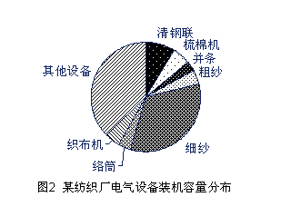 某紡織廠的電機功率分布情況如圖2,圖中其他設(shè)備包括空調(diào)、供水供熱、制冷和電梯等。由于變頻器調(diào)速給紡織生產(chǎn)帶來質(zhì)量和效率的巨大改進,許多紡織廠正在積極研究和推廣變頻器應(yīng)用技術(shù),他們樂于接受帶有變頻器調(diào)速的紡機設(shè)備,對于舊設(shè)備的變頻化改造熱情越來越高。