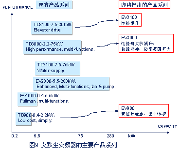 艾默生變頻器不斷推陳出新,已形成豐富的產(chǎn)品系列,近90個規(guī)格。主要的產(chǎn)品系列如圖9所示。