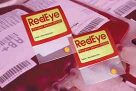 具有自粘性的RedEye氧含量傳感片可以附著在樣本容器的表面,如血袋,藥片包裝,或是護理分析設備,比如一次性使用的呼吸機氧氣附件,以非入侵式的方式來完成包裝內(nèi)的氧氣濃度測量。海洋光學專利的納米多孔凝膠涂層具有良好的抗反應能力,能保持傳感器的性質(zhì)穩(wěn)定,能保護傳感片?;诓煌膽?,可以通過手持式LED的顏色變化來觀測是否有氧氣存在,或者利用熒光光度計直接測量出精確的含氧量。