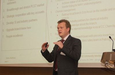 西門子自動(dòng)化與驅(qū)動(dòng)集團(tuán)石化與化工中國業(yè)務(wù)中心總監(jiān)Andreas Geiss 先生在大會(huì)發(fā)表了講話,闡述了中國石化與化工中國業(yè)務(wù)中心的策略和目標(biāo):要在2010年推動(dòng)西門子成為中國自動(dòng)化行業(yè)第二,并在2010年底前每年贏得兩個(gè)百萬以上的大項(xiàng)目。此外,Andreas Geiss 先生還向聽眾介紹了中國業(yè)務(wù)中心的團(tuán)隊(duì)構(gòu)架和一財(cái)年的主要業(yè)績。
