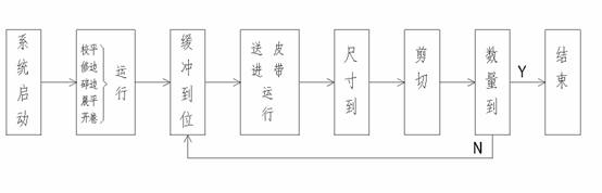 定尺送進、橫剪刀和皮帶是斷續(xù)運行。板材由定尺送進機的牽引輥按照加工要求的長度送入剪扳機進行橫向剪切。因此,定尺送進機是生產(chǎn)線的位置控制精度要求最高的設(shè)備。