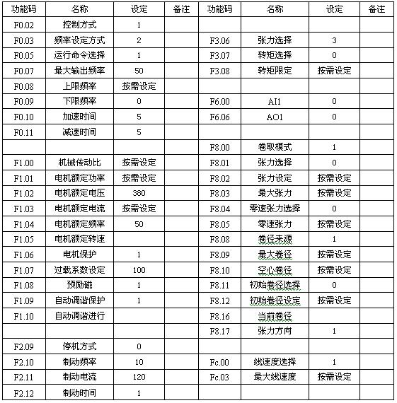 五、TD3300張力控制專用變頻器的設(shè)定:(參見—變頻器的用戶手冊)