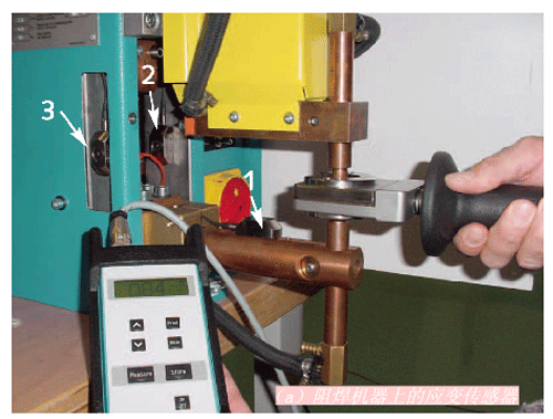2、焊接時(shí),間接在線測(cè)量焊接力,如將應(yīng)變傳感器裝于機(jī)架或電極適配器上。