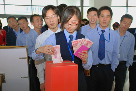 隨后,三個(gè)長(zhǎng)長(zhǎng)的捐贈(zèng)隊(duì)伍不斷地走向捐款箱,秩序井然地進(jìn)行著愛心捐贈(zèng)。很多同事捐款后并不在簽名簿上留名,而留名的同事,都在上面鄭重地寫下兩個(gè)字-天瑞。簽名簿上最美麗、最可愛的名字就是 “天瑞”。捐款活動(dòng)持續(xù)了大約半個(gè)小時(shí),共籌集善款11萬1千2百6拾4元4角。