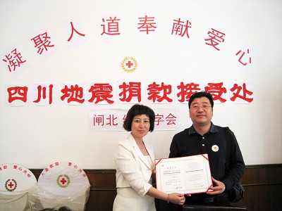 中國區(qū)銷售總監(jiān)張松代表 Hans Beckhoff 先生向上海閘北區(qū)紅十字會捐款 100000元人民幣。
