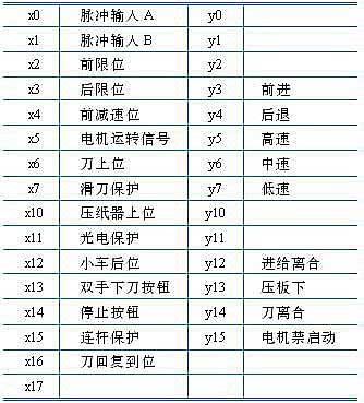 針對(duì)這些必需的輸入點(diǎn)數(shù),選用了fx1s-30mr的plc,因?yàn)檫x用了人機(jī)界面,其它一些手動(dòng)動(dòng)作,如前進(jìn)、后退、換刀等都通過(guò)人機(jī)界面實(shí)現(xiàn),不需占用plc輸入點(diǎn),從而為選用低價(jià)位的fx1s系列plc成為可能,因?yàn)閒x1s系列plc輸入點(diǎn)最多只有16點(diǎn)。另外此系列plc的高速計(jì)數(shù)器具有處理頻率高達(dá)60千赫的脈沖的能力,足可以滿足切紙機(jī)對(duì)精度的要求。