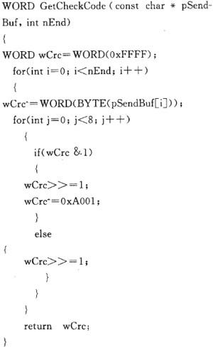 Mdobus協(xié)議定義兩種串行傳輸模式:RTU模式和ASCl模式,規(guī)定了報文域信息位(bits)在線路上串行傳送方式,確定了數(shù)據(jù)信息如何形成報文和報文如何解碼。本系統(tǒng)采用RTU模式。在消息中的每個SBit字節(jié)包含兩個4Bit的十六進制字符,見表1。這種方式的主要優(yōu)點是:在同樣的波特率下,可比ASCll方式傳送更多的數(shù)據(jù)[2> 。