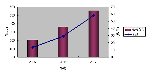 Graph 2: 2005-2007 the sales venue and profit increase tendency of domestic oil drilling equipments manufacturing industry